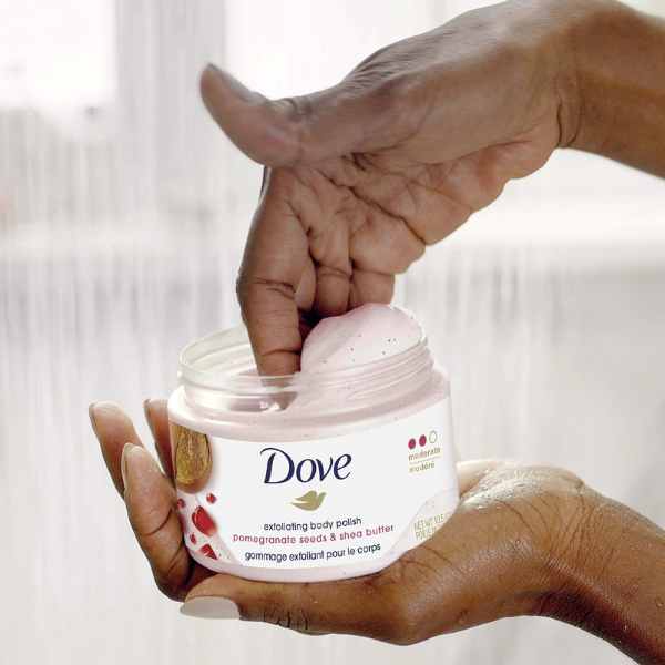 اختاري مقشر الجسم من دوف بحبيبات الرمان وزبدة الشيا لبشرة أنعم، أنقى، وأكثر إشراقًا مع كل حمّام!